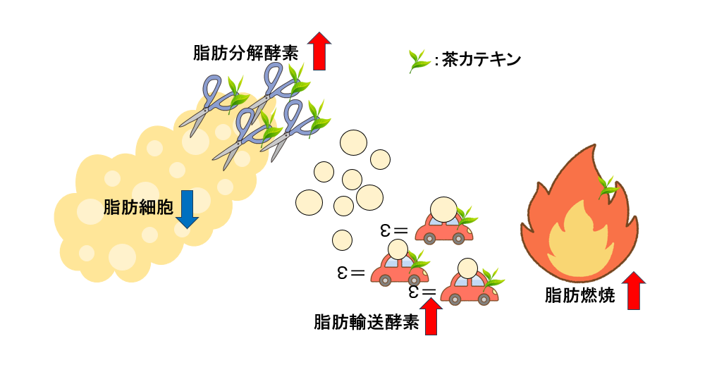 有効成分である「茶カテキン」は脂肪細胞中の脂肪分解反応を促進、