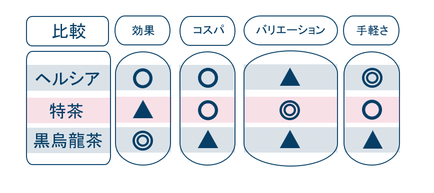 効果を気にせず、いろんな味のバリエーションで飽きずに手軽に飲み続けたいなら「特茶」といった感じかな。